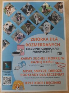 Zachęcamy serdecznie do wzięcia udziału w organizowanej przez nasze przedszkole zbiórce karmy i innych akcesoriów dla bezdomnych i potrzebujących zwierząt przebywających w stowarzyszeniu ,,Rozmerdany Dwór” w Bogumiłowie.